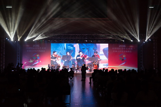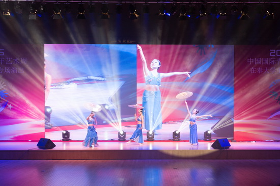 9月20日晚,2016年中国国际青年艺术周(上海•奉 贤)在奉大学生专场演出在我校体育馆精彩上演。我校2000多名学生及华东理工大学、上海师范大学的学生在现场观看了演出。上海市奉贤区文广局、上海师范 大学、华东理工大学和我校校长办公室、党委学工部(处)、保卫处、体育教育部、团委等部门的相关负责人和老师参加了本次活动。