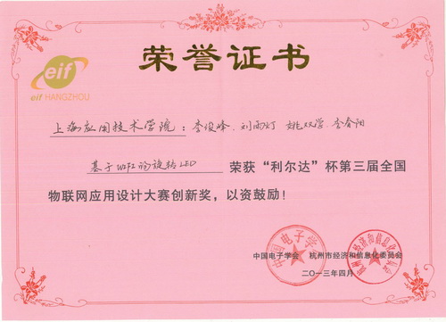 2013年度第三届全国物联网应用设计大赛创新奖结果于近日揭晓,工程创新学院学生李俊峰、刘雨灯、李春阳(电气)、姚双学(人文)团队(指导教师:电子信息工程学院汲伟明老师)作为我校唯一的参赛队获得了全国创新奖,这是继我校学生在前两届比赛获得全国三等奖之后,取得的又一次突破。
