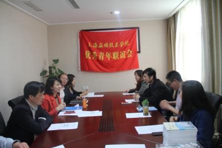 在校优秀青年联谊会理事会议上,增补校团委书记张化为副会长,吸纳机械学院副院长吴雁、科技处张钰为新会员。参会人员就青年联谊会的制度建设、职能定位、发展愿景、活动安排等方面展开了充分的研讨。(上海应用技术学院优秀青年联谊会)
