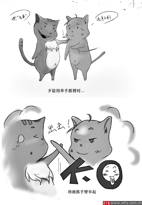 据她介绍,整个漫画分为五部分,涉及急救知识、防歹徒技能、交通指南等方面,队中6名来自艺术专业的队员发挥了很大作用。记者看到,其中“防拥挤”篇,以5幅为一组,主角是一只萌萌的橘红色猫。在众猫之中,橘色的小猫双臂交叉抱住放于胸前,抵住前面的白猫后背,防止在猫多拥挤的时候被猫挤压摔倒保护自己,漫画下面还配有文字解说,“我们尽量将漫画描绘得细致,可以直接照着漫画上面的去做。”