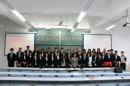 10月16日晚6点整,2014-2015学年第一学期经济与管理学院团总支学生会第一次全体成员大会在第一教学楼C101举行。经管学院学生会秘书处处长梁皑琛主持大会,经管学院团总支书记胡梦澜老师及全体团总支与学生会成员出席本次大会。伴随着嘹亮的团歌声,经管学院团总支书记胡梦澜老师为大会致辞。胡梦澜老师首先对新干事的加入表示欢迎,她希望新干事们能珍惜加入经管学院团总支学生会的机会,努力工作,锻炼自我,不断提升。同时要求各部门之间加强交流与合作,创建一个教学型的团总支和学生会。学生会各分管副主席、各部门部长分别上台发言,在介绍板块与部门职能的同时,他们也提出了在新一学期中的计划与期望。他们都提到,每个部门都将各司其职,但却又互相协助,共同发展。发言赢得了全体成员的掌声。最后,会议在《每月一报》的播报中落下帷幕。