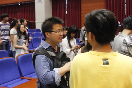 14时30分,影片在一片掌声中结束,现场的学生与导演展开热烈的交流与讨论。有同学提到我校建立的农民工子弟功课辅导平台,指出大学生应该更多的去关爱这些孩子,给他们指引正确的道路。一位老师更是分享了自己童年时背小黑板去上学的经历,他指出越是贫困地区的孩子,越是渴望和珍惜上学的机会,需要被社会关爱。结合我校西部计划、江西宁都支教计划、暑期社会实践等活动的火热启动,不少同学现场请教导演和团委老师,“如何才能更加有效的支教?”,“贫苦山区的孩子如何建立自信?”,“国家西部支持政策的落实情况是怎样的?”等等。影片的播放一时间激发了同学们参与社会实践和社会公益的热情。