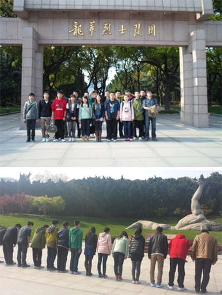 同学们首先向烈士纪念碑敬献花束,参观了烈士纪念馆。接着在复旦大学少年中国学社的讲解下共同瞻仰烈士墓,面向烈士墓三鞠躬。随后各社团负责人在园内举行研讨会,交流了各自社团活动情况;各社团成员之间就国际和地区局势、航空安全等近期热点问题进行自由讨论,气氛活跃,同学们也展现了当代大学生应有的理性和客观态度。