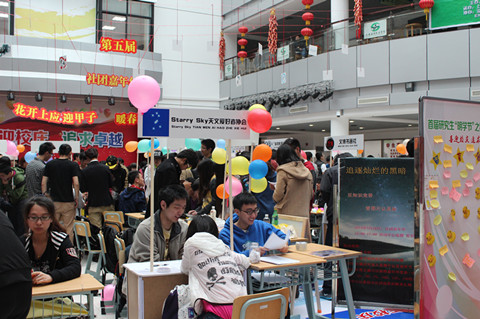 |  4月26日下午,校庆系列活动之“花开上应迎甲子,暖春社团庆华诞”第五届社团嘉年华于学生活动中心大厅正式开幕。本次嘉年华活动有32个社团参加,各社团的位置被精心组合成“60”的图案。 各社团通过多种丰富多彩的小游戏和节目表演,向校友与同学们展示各自社团的魅力,让每一位参与者融入其中,共同为学校60周年校庆献礼。器乐社在现场教授弹奏吉他、古筝、电子琴等乐器; MICE SKY会展协会精心设计了一套闯关小游戏,让参与者们了解会展策划人的基本素养与专业知识;芳香社让校友和同学们闻香猜谜,增长参与者香精香料方面的知识;逸清茶社优雅的茶道表演,让许多校友停下脚步静静欣赏。卡特乐队激情四射的摇滚乐演奏更是把嘉年华的气氛推向了高潮。 社团嘉年华以荟萃社团文化、缤纷校园文化生活为宗旨,是在校学生对母校表达感情的最生动的方式。在汲取历届活动经验的基础上,本届社团嘉年华加入了许多创新的元素,充分调动了校友与同学的参与积极性,丰富了学生的校园生活,展现了上应青年的风采。 |