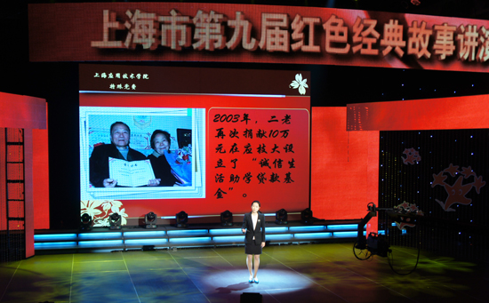 10月28日,以“同铸复兴路,共圆中国梦”为主题的上海市第九届红色经典故事讲演活动录播展演暨颁奖典礼在上海教育电视台举行。我校组织选送的作品《特殊党费》荣获活动二等奖。