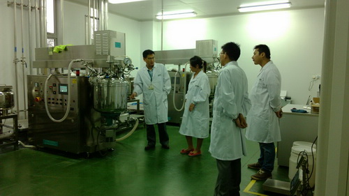 参观过程中,企业的技术人员先后讲解了公司研发部的部门职责、公司对该部门的重视程度以及发展现状。团队成员在充分了解研发部的基本情况后,来到生产一线工厂,第一次看到了化妆品生产的完备设施和一流技术生产线。