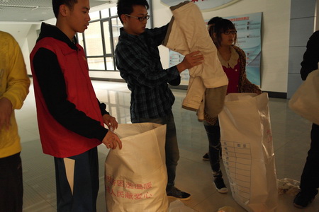 4月10日下午5时,电气学院大红枣志愿者队队员来到我校慈善爱心屋,捐赠了3·5学雷锋活动期间募集到的物品,包括85件上衣、43条裤子、20件鞋帽围巾以及200多本书籍。