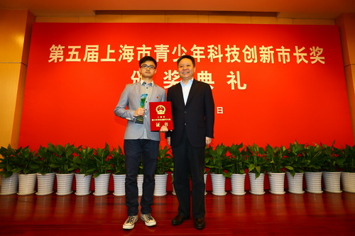 5月15日,第五届“上海市青少年科技创新市长奖”颁奖仪式在团市委隆重举行,我院曾凯同学获“上海市青少年科技创新市长奖”提名奖受到表彰。副市长沈晓明亲自为他颁奖。