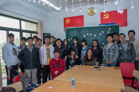4月24日星期三中午十二点半,理学院新芽志愿者队在七号楼党团活动室举行了以“雅安,加油”为主题的志愿者祈福活动。