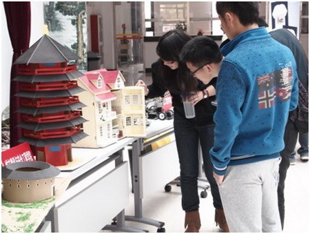 展览共征集到各二级学院选送的学生手工作品22件,包括传统文化建筑模型、电磁小车、日本动画人物模型、手工折纸、数字油画等,展出作品构思新颖、手工精湛。这些风格迥异、创意无限的手工艺品为学生们带来一场视觉盛宴,同时也充分反映了我校学生追求精艺的生活态度和精巧的手工技艺。