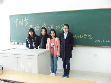 深谙“中国梦”,走进大学生。由华东理工大学外国语学院分团委主办、面向海湾三校全体学生的“中国梦”英语演讲比赛开始了!2013年3月22日中午12:00点,上海应用技术学院外国语学院在第二教学楼G306进行“中国梦”英语演讲比赛的预选。此次比赛邀请外国语学院英语专业苑冰老师作为评审老师,由外院学生会组织部主持。