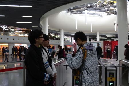 人民广场地铁站是目前上海最大的地铁交通枢纽换乘站,也是最大规模的“地下城”。经管学院志愿者队首次外出组织地铁站志愿者活动,为了能更好地给乘客们提供服务,每位志愿者充分准备,在地铁站工作人员的悉心指导和安排下,队员们配戴上志愿者袖标,到达自己的岗位。