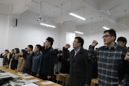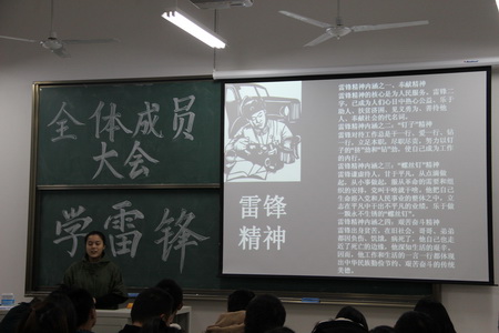 化工学院团总支书记王震老师为启动仪式致辞并宣布化工学院“学雷锋,我们在行动”活动正式开始,他指出当今大学生学习雷锋精神的重要性,并要求同学们学习雷锋精神,建设文明校园。随后,在学生会副主席的带领下,全体成员进行了宣誓仪式。和去年的3月5日一样,同样的誓言,同样的朝气。虽然宣誓的人不同,但誓言却没有变,这恰恰是雷锋精神代代传承的真实写照。