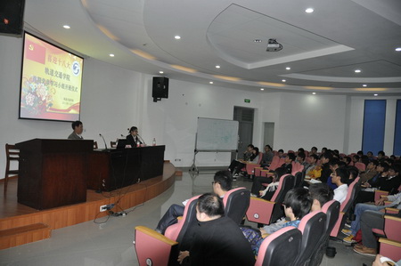 开班仪式结束后,由赵健老师为全体学员做辅导报告,给学员们上了一节生动而深刻的党史课,他以党的历届全国大表大会为主线,回顾了党的发展历程,并紧跟时代步伐,向同学们介绍了十八大的相关情况。赵老师还向学员们提出了思想、学习、生活、工作等方面的要求,每位学员都在这一小时的讲座中获益良多。