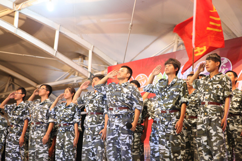伴随着嘹亮的军歌,拉歌比赛开始,各营排着整齐的队伍进入操场,围绕舞台呈半圆结构席地而坐,“一二三四五,我们等的好辛苦”的呼喊声不绝于耳,全场激昂,形成此起彼伏的歌声海洋。最终二营赢得“拉歌优胜奖”。