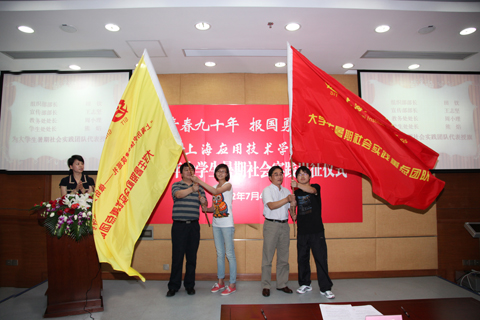 仪式上,组织部部长田钦、宣传部部长王志坚、学生处处长熊焰、教务处副处长肖立中分别为“三下乡”、“知行杯”、“历史保护建筑巡礼”、其他类共4类实践团队代表授旗。外地实践团带队教师代表范文蓓和校团委签订《安全责任书》。学生代表、带队老师代表作了交流发言。