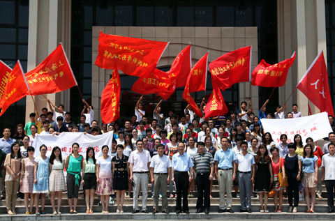 7月4日下午,在图书馆B102举行了我校“青春九十年,报国勇争先”大学生暑期社会实践出征仪式。校党委副书记、副院长康年出席仪式并讲话。仪式由校团委书记韩磊主持。