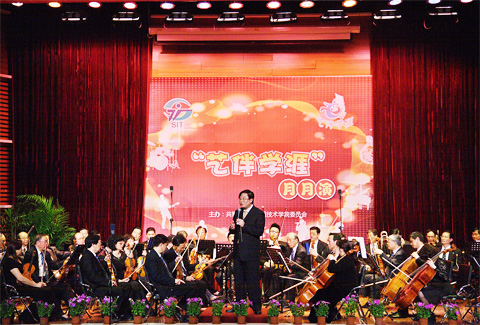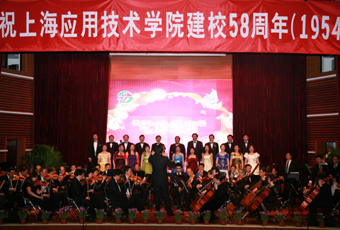 为庆祝我校建校58周年,4月23日晚,学校特邀了上海大众交响乐团在学生活动中心多功能厅为我校师生献上了“世纪交响•喜迎校庆”交响音乐会。国家一级作曲家、维也纳国际音乐大赛评委、上海电视台首席编曲沈传薪先生,欧洲音乐艺术家联合会常务主席、维也纳音乐学院常务院长郭智斌先生,上海虹桥画院副院长丁志强先生作为嘉宾莅临现场。