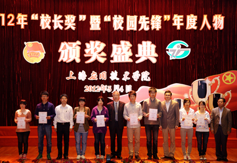 喜迎中国共青团成立90周年,凝聚榜样力量,构建育人平台,学校于5月4日下午在奉贤校区学生活动中心多功能厅隆重举行2012年“校长奖”暨“校园先锋”年度人物颁奖盛典。校党政领导祁学银、卢冠忠、康年、宋敏娟、刘宇陆、叶银忠,团市委学校部部长陈立俊出席盛典,校职能部门负责人各二级学院院长、书记,优秀教师及团员青年代表参加了本次颁奖礼。