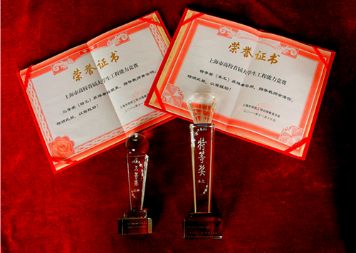 日前,我校工程创新学院学生在由上海市高校工程训练教育协会主办的上海市首届“大学生工程能力竞赛”中拔得头筹,获得骄人成绩——2009级“卓越班”学生谷朋和陆朔豪同学分别荣获了车工“特等奖”和钳工“三等奖”。