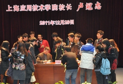 12月29日晚六点,奉贤校区图文信息楼B106报告厅人头攒动,座无虚席,校长卢冠忠作客“天天讲”,倾情讲述“SIT的成长与未来”,为2011年度“天天讲”活动圆满收官。党委副书记、副校长康年也到场聆听。