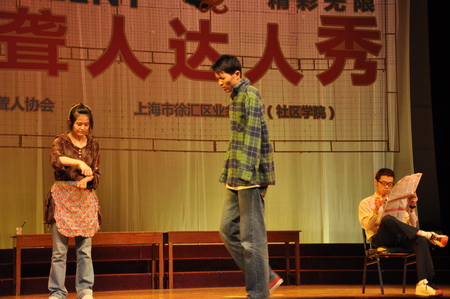 从开始排练到聋人节达人秀活动时间较短,对聋人学生来说又是一个严峻的考验。所以整个过程当中社团指导教师孟军都参与了排练,院领导也多次来到排练现场为同学们加油打气,在加上专业老师的指导,社团的特教学生们克服自身的种种困难,顽强拼搏,付出了超乎常人想象的艰辛投入到此次活动中。动作要逼真、表情要自然,这些看似并不十分困难的要求,对于特教班学生们而言,简直是难上加难。但学生们本着认真、仔细、严谨的态度,配合老师的指导,一遍不行再来一遍,经过多次的反复排练,同学们从开始的表情不自然,一步步进入了表演状态,渐渐进入了自己的角色,使表演渐入佳境。