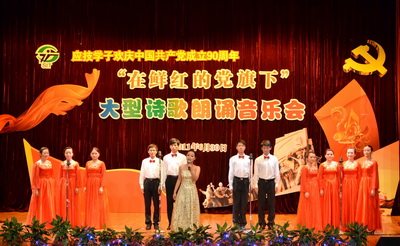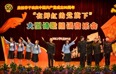 光影炫目、诗句高亢,音乐恢弘、歌声嘹亮,纵情礼赞、旗帜高扬,面向未来、创造辉煌。庆祝中国共产党成立90周年“在鲜红的党旗下”大型诗歌朗诵音乐会于6月30日18:00在学生活动中心多功能厅隆重举行。祁学银、卢冠忠、康年、宋敏娟、叶银忠等校党政领导出席,与400余名师生共同欢庆党的九十华诞。