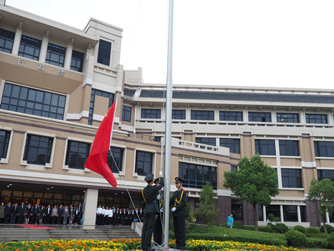 为隆重庆祝建国68周年,表达全校师生对党的十九大的热切期盼,930日上午,学校在奉贤校区行政楼前广场隆重举行“致敬五星红旗——上海应用技术大学师生国庆升旗仪式”。校党委副书记、副校长张艳萍出席仪式并讲话。党委常委、宣传部长杨明主持仪式。学校有关部门及师生代表参加仪式。