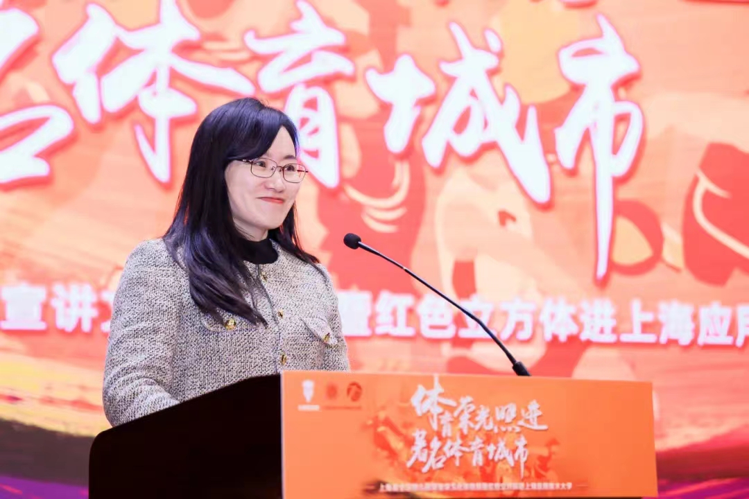 校党委副书记、副校长王瑛致欢迎词,对活动主办方上海市体育局的支持表示感谢,对钟天使和上海体育宣讲团的到来表示欢迎。她指出,近年来学校的校园体育文化蓬勃发展,竞技体育人才培养成果显著,希望同学们用心聆听冠军们在挫折和坚持中涅槃成长的故事,汲取成长力量,在青春之路上奋力前行。王瑛表示,学校也将“红色立方体”作为学校迎校庆活动打卡点之一,希望同学们迈开脚步,在运动中锤炼意志品格,彰显拼搏精神,以实际行动为上海应用技术大学建校70周年这一具有纪念意义的时刻献礼。