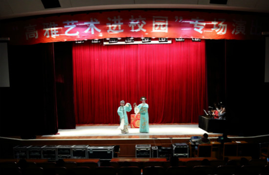 昆曲是中国传统戏曲中最古老的剧种之一,被称为百花园中的一朵“兰花”,2001年被联合国教科文组织评为“人类口述非物质文化遗产”。《牡丹亭》是明代剧作家汤显祖的代表作,也是昆剧的经典保留剧目。故事通过柳梦梅和杜丽娘二人追逐爱情的故事,呼唤个性解放、爱情自由、婚姻自主。一曲《牡丹亭》,四百年青春梦,笙箫鸣细细,钟鼓响摐摐,上海昆剧团的演员们身段、唱腔俱佳,两个小时的演出,琴抚箫吟,呈现昆曲独有的水磨腔之美,展现出昆曲艺术的别样魅力,陶醉了师生,赢得阵阵热烈的掌声。