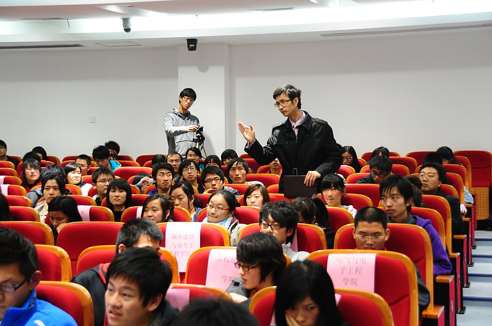 11月18日晚18:00,上海应用技术学院学生会首届新闻发布会在图文信息楼B101报告厅隆重举行。校团委指导老师宗雷敏、各二级学院学生会代表以及学生会所有部门成员参加了本次发布会,会场座无虚席。