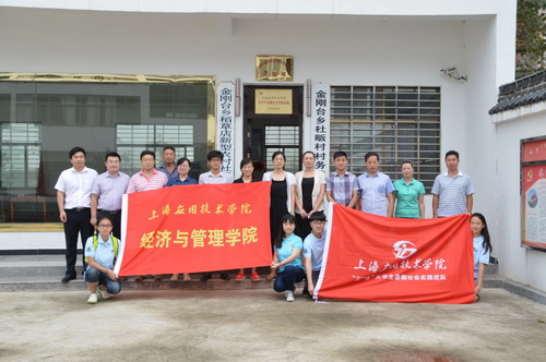 7月25日上午,上海应用技术学院大学生社会实践基地揭牌仪式在河南省信阳市商城县金刚台乡杜畈村隆重举行,这是我校与河南省共建的第二个大学生社会实践基地。我校经管学院合作发展与就业服务中心主任孙吉娟和经管学院团总支书记胡炳立受校团委委托,与共青团商城县县委书记许呈林、商城县“美丽乡村”建设办公室综合组组长孔令桥、商城县金刚台乡党委副书记吴雪云、上海应用技术学院“美丽中国行”实践团队成员及各方面相关人员共同出席完成本次活动。