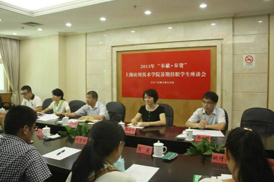 随后,“奉献•奉贤”上海应用技术学院暑期挂职学生座谈会在奉贤区会议中心召开。会上,刘宇陆与20名学生志愿者亲切座谈。奉贤团区委、我校团委负责人,学校在奉贤区挂职的教师等参加会议。