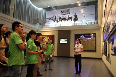随后,石河子大学校方安排时间团队参观中国唯一一座以新中国新疆屯垦戍边史为主要陈列内容的军垦博物馆,参观瞻仰这座兵团人精神的殿堂,学习感受那峥嵘岁月。军垦博物馆是以实物、图片、史料文字的形式再现了兵团创建、发展的全过程,突出了兵团人创业的艰辛及党中央几代领导集体对兵团事业的关心与支持。令人印象深刻的是体现进疆人民解放军向荒原开战的大型立体实景图,人迹罕至的戈壁、干旱缺少的严酷自然条件下,兵团人白手起家、战天斗地,开垦荒原、搭建地窝铺,硬是在这片荒漠中扎下根、立下足,用青春、热血甚至生命创造出一片新的天地。在场师生无不为之震撼与动容,“热爱祖国,艰苦奋斗,无私奉献,开拓奋进”的兵团精神已深深印入实践调研团师生心中。