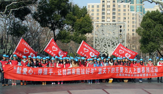 1月12日,我校300名志愿者在团委老师的带领下,走上申城冬日的街头,参加由上海慈善基金会举办的第20届“蓝天下的至爱”万人募捐大型慈善活动。