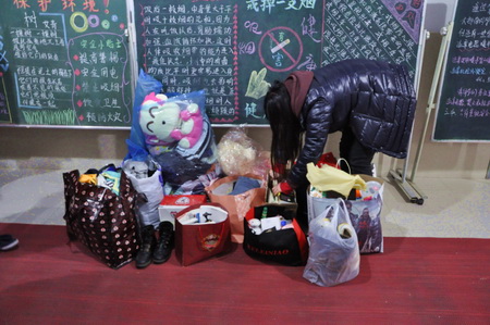 在募捐的过程中,义工队队员们两两一组,在每层楼中客气礼貌地敲开一个个寝室门。队员们首先简单清晰地介绍了本次活动的目的与意义,再向同学们询问有无闲置的物品作为献爱心的捐赠物。了解情况后,同学们纷纷把自己的书本、文具、玩具等物品交给义工队的队员。在义工队员们的辛苦努力和同学的积极参与和支持下,此次募捐到的物资颇多。