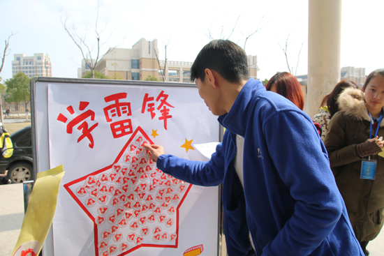 春风送暖,爱心传情,一年一度的“学雷锋日”悄然来临。今年3月5日是毛泽东同志题词“向雷锋同志学习”51周年纪念日,也是第15个“中国青年志愿者服务日”。为倡导全校师生学习雷锋精神,真诚服务他人,创建奉献、友爱、互助、进步的校园文明环境,一场由校团委志愿者部发起,各二级学院共同参与的“三五同行•学习雷锋”志愿服务系列活动在校园内外正如火如荼地开展。
