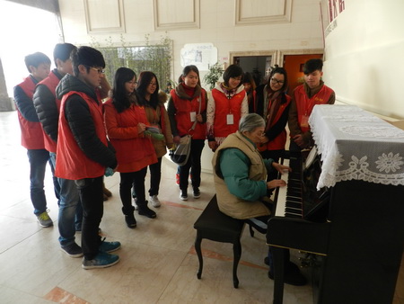 七点半,义工队的成员们来到了蘭公馆敬老院。队员们或陪老人聊天散步,或帮助老人修电脑,或与他们一起翻看收藏多年的照片,就好似一个其乐融融的大家庭。临别之际,老人们弹奏了一曲《友谊天长地久》为经管义工队送别,绵长的乐曲中,无不透露着老人的喜悦和感谢之情,让义工队的成员们倍受感动。