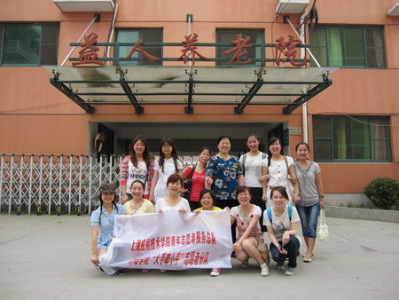 2010年5月21日上午,上海应用技术学院外国语学院“大手牵小手”志愿者分队的一行人来到光明敬老院,走进敬老院的爷爷奶奶们的生活,为他们带来快乐,献出我们的一片爱心。